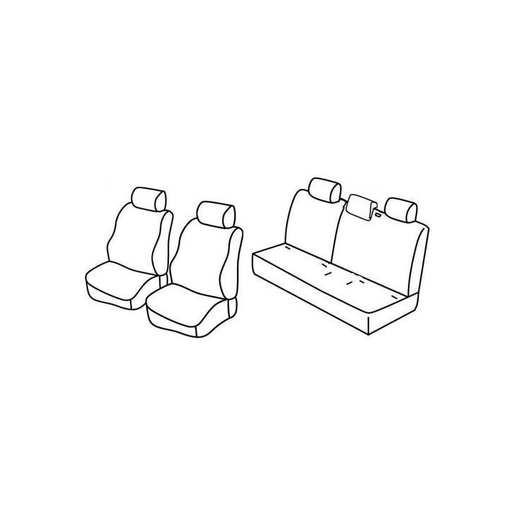 juego de fundas a medida de tela delantera (2 asientos delanteros + reposabrazos + 2 reposacabezas) + (banqueta trasera: asiento + respaldo + reposacabezas)