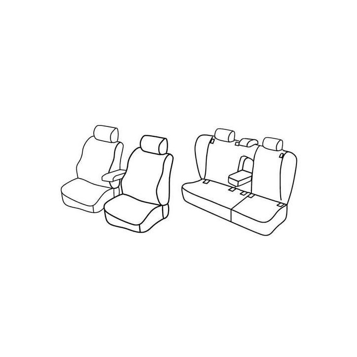 juego de fundas a medida de tela delantera (2 asientos delanteros + reposabrazos + 2 reposacabezas) + (asiento trasero: asiento + respaldo + reposacabezas)