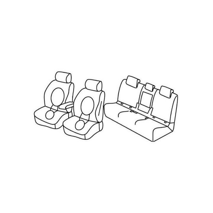 juego de fundas de tela a medida delanteras (2 asientos delanteros + reposabrazos + 2 reposacabezas) + (asiento trasero: asiento + respaldo + reposacabezas):