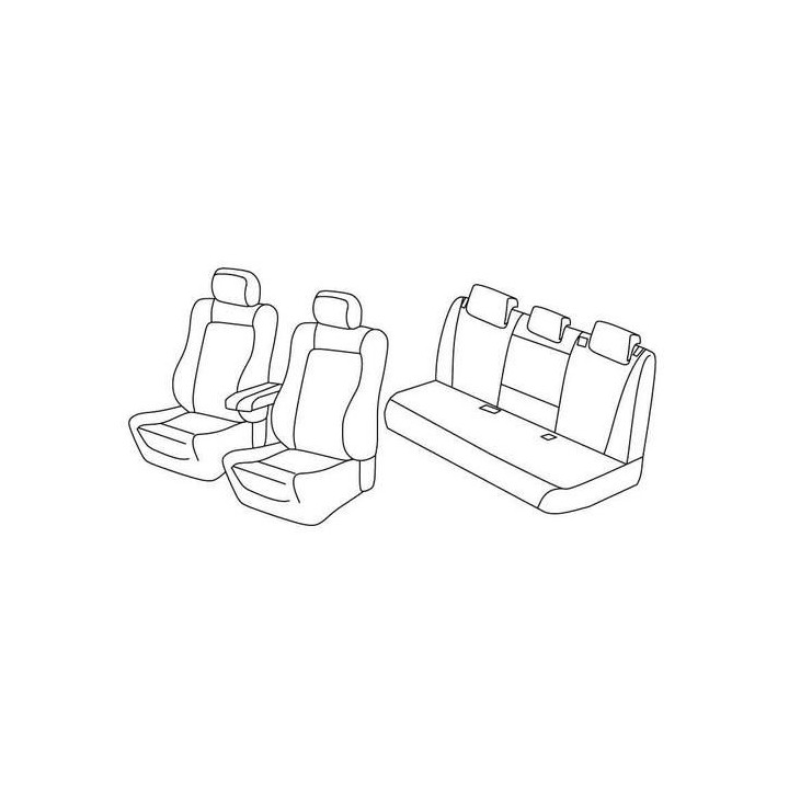 juego de fundas de tela a medida delanteras (2 asientos delanteros + reposabrazos + 2 reposacabezas) + (asiento trasero: asiento + respaldo + reposacabezas):