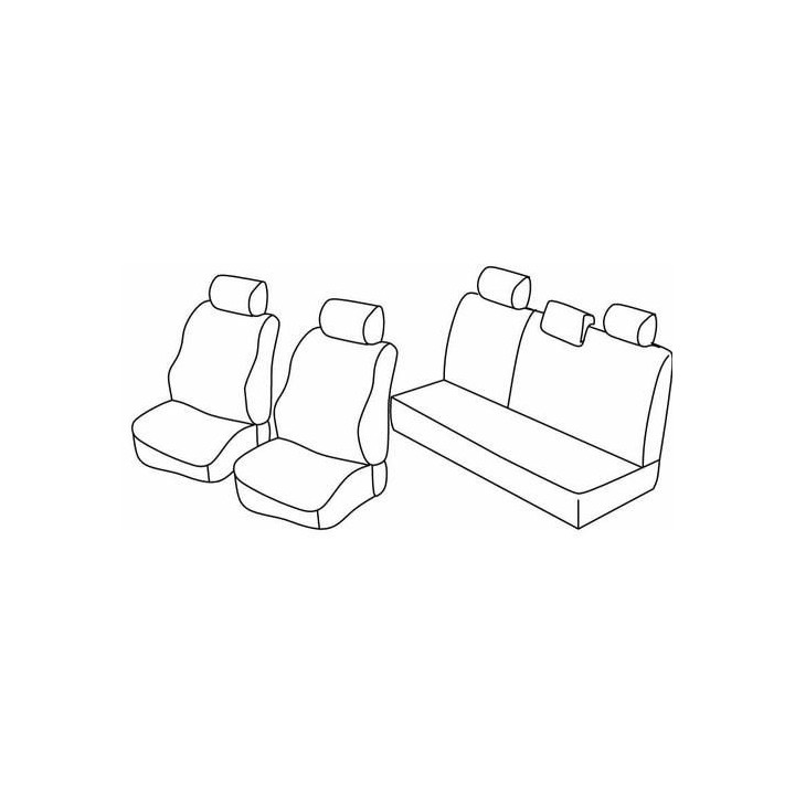 juego de fundas de tela a medida delanteras (2 asientos delanteros + reposabrazos + 2 reposacabezas) + (asiento trasero: asiento + respaldo + reposacabezas)