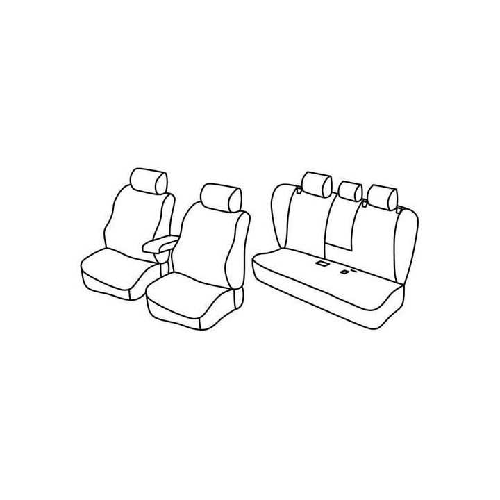 juego de fundas a medida de tela delanteras (2 asientos delanteros + reposabrazos + 2 reposacabezas) + (asiento trasero: asiento + respaldo + reposacabezas):