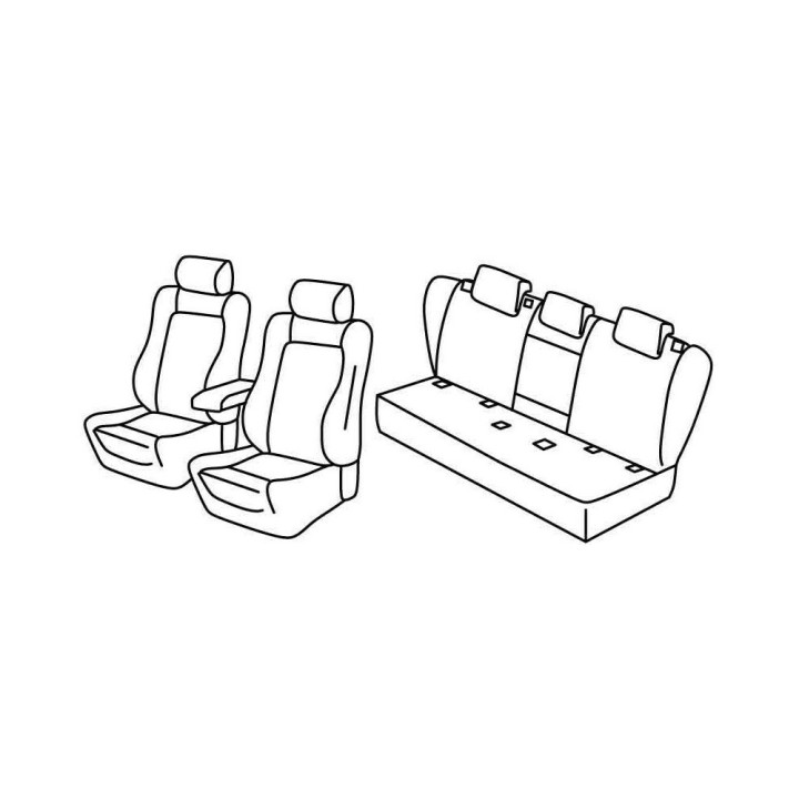 juego de fundas de tela a medida delanteras (2 asientos delanteros + reposabrazos + 2 reposacabezas) + (asiento trasero: asiento + respaldo):
