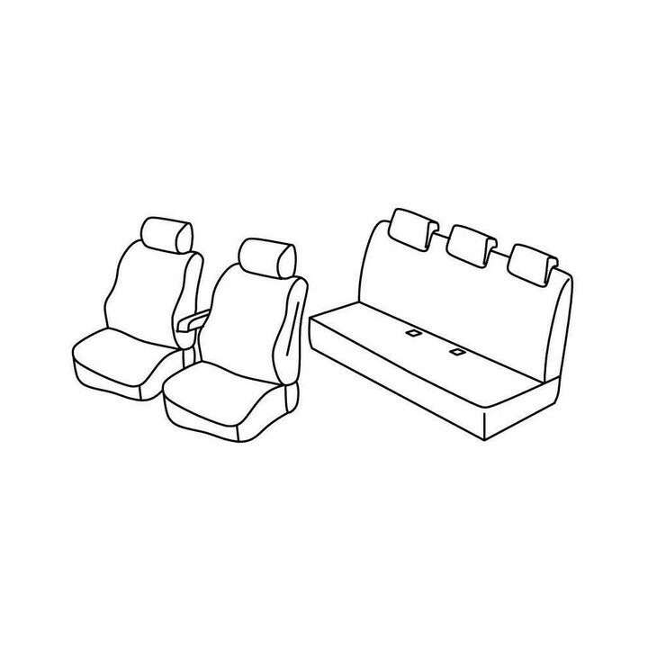 juego de fundas de tela a medida delanteras (2 asientos delanteros + reposabrazos + 2 reposacabezas) + (asiento trasero: asiento + respaldo + reposacabezas):