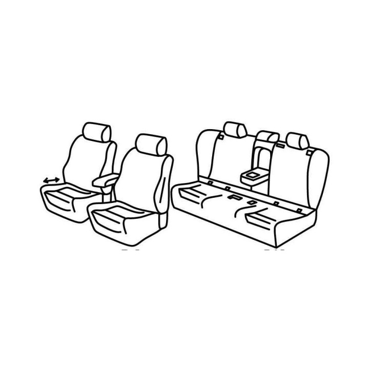 juego de fundas de tela a medida delanteras (2 asientos delanteros + reposabrazos + 2 reposacabezas) + (banqueta trasera: asiento + respaldo):
