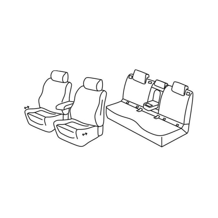 juego de fundas a medida de tela delantera (2 asientos delanteros + reposabrazos + 2 reposacabezas) + (asiento trasero: asiento + respaldo + reposacabezas)
