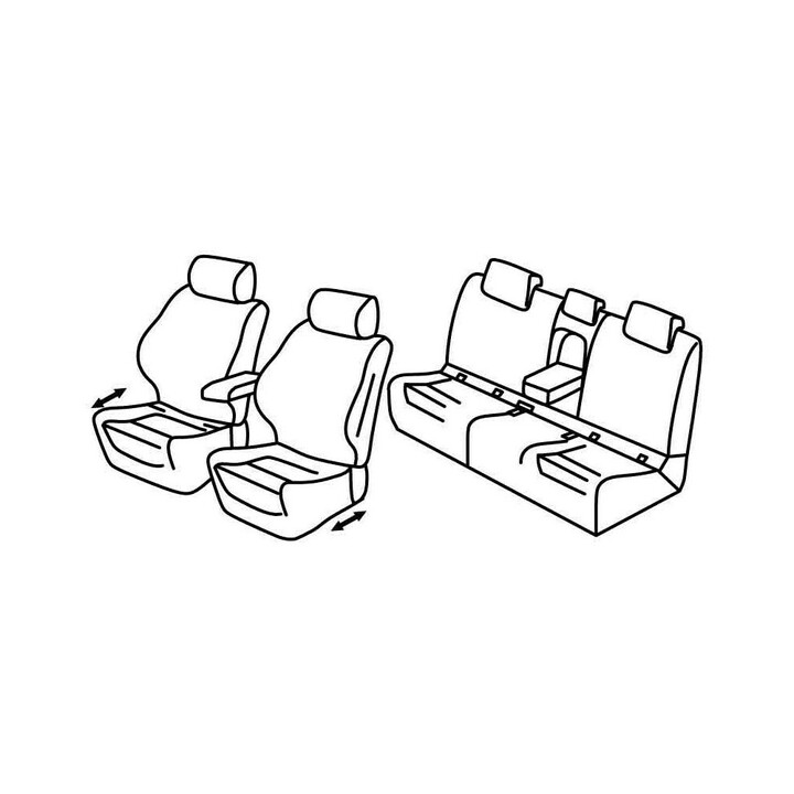 juego de fundas de tela a medida delanteras (2 asientos delanteros + reposabrazos + 2 reposacabezas) + 1ª fila :(asiento trasero: asiento + respaldo + reposacabezas)