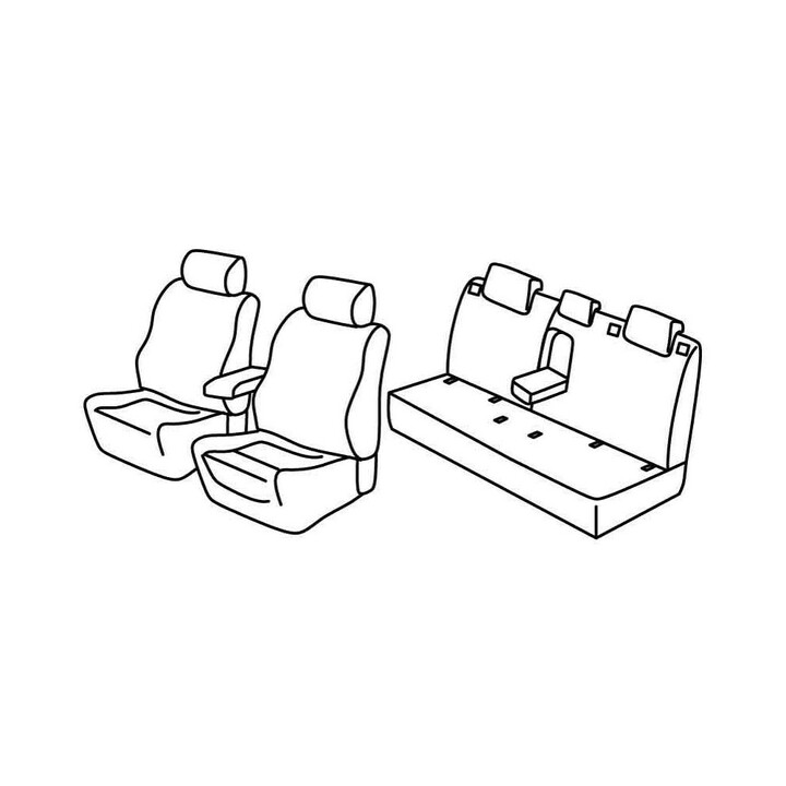 juego de fundas de tela a medida delanteras (2 asientos delanteros + reposabrazos + 2 reposacabezas) + (banqueta trasera: asiento + respaldo)