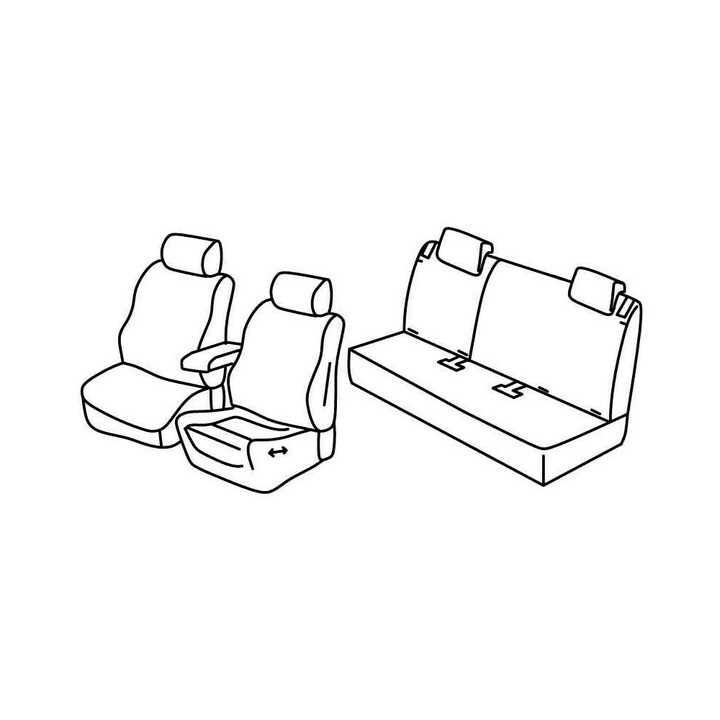 juego de fundas de tela a medida delanteras (2 asientos delanteros + reposabrazos + 2 reposacabezas) + (banqueta trasera: asiento + respaldo)