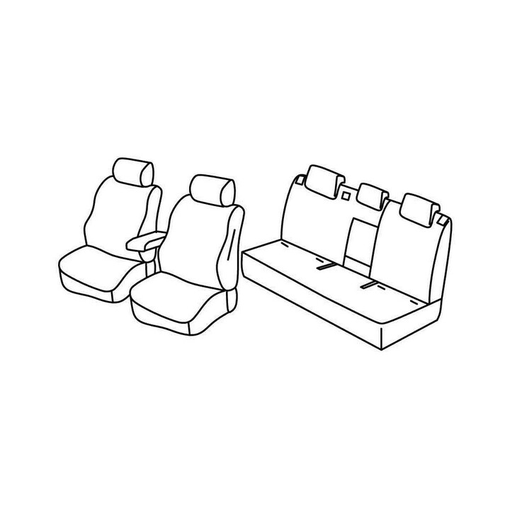 juego de fundas de tela a medida delanteras (2 asientos delanteros + reposabrazos + 2 reposacabezas) + (banqueta trasera: asiento + respaldo)