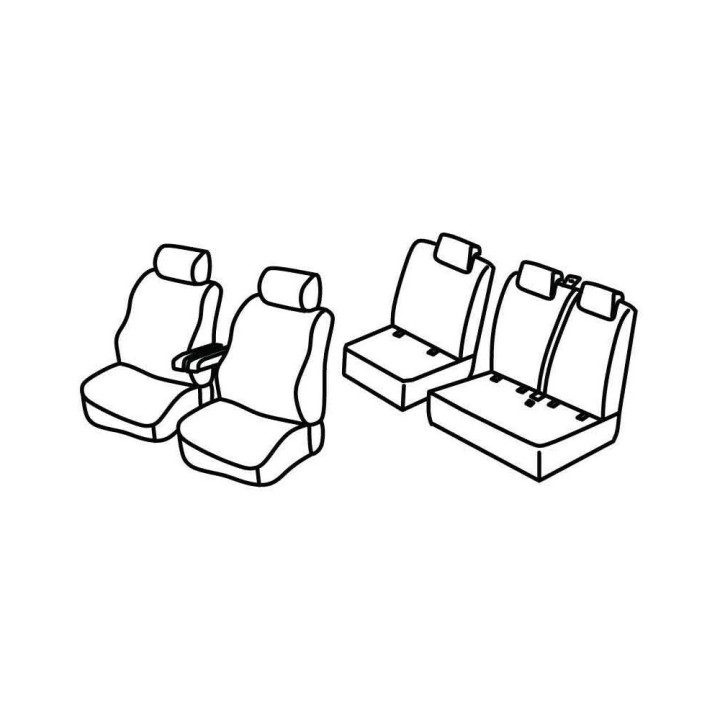 juego de fundas de asiento de tela a medida delanteras (2 asientos delanteros + reposabrazos + 2 reposacabezas) + (banqueta trasera: asiento + respaldo)