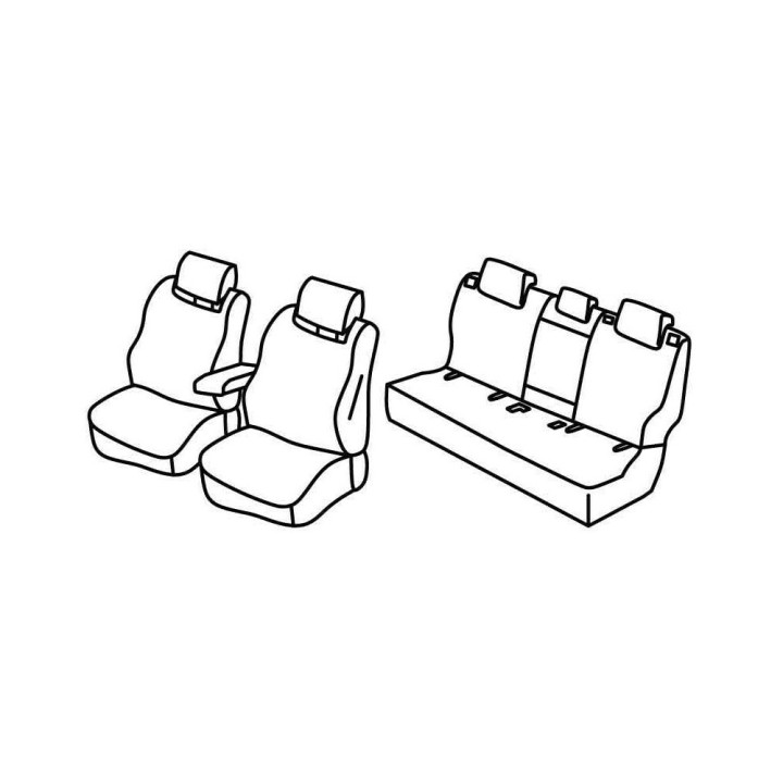 juego de fundas de tela a medida delanteras (2 asientos delanteros + reposabrazos + 2 reposacabezas) + (asiento trasero: asiento + respaldo + reposacabezas)