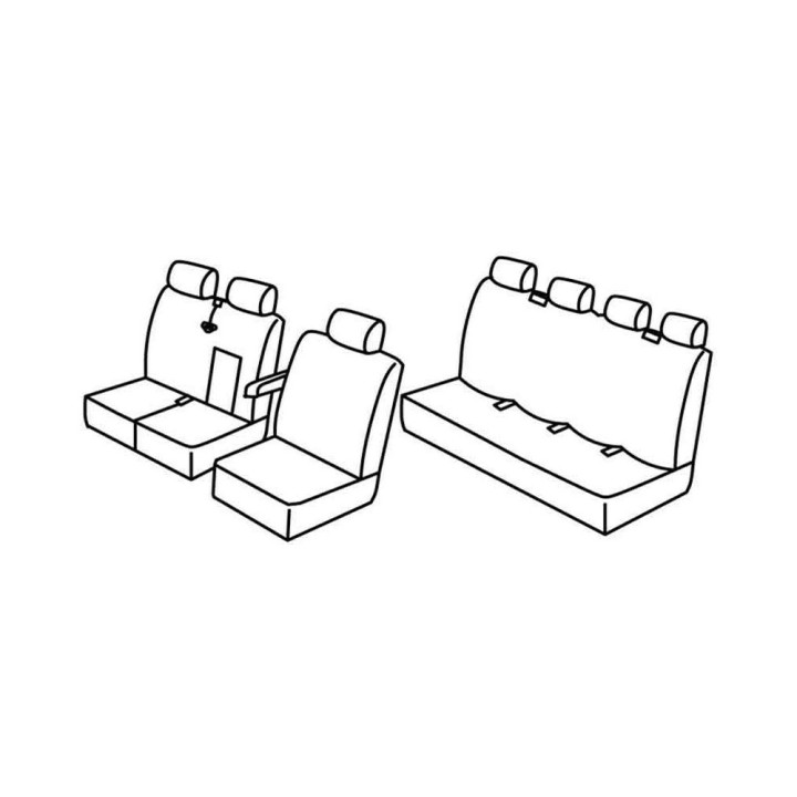 juego de fundas a medida de tela delantera (1 asiento delantero + reposabrazos + reposacabezas) + (Asiento delantero: Asiento + Respaldo + Reposacabezas (2 plazas)) + asiento trasero de 4 plazas