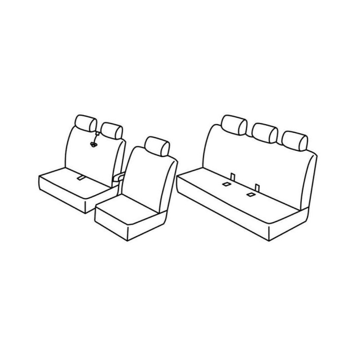 juego de fundas de tela a medida delanteras (1 asiento delantero + reposabrazos + reposacabezas) + (Banqueta delantera: Asiento + Respaldo + Reposacabezas (2 plazas)) + banqueta trasera de 4 plazas