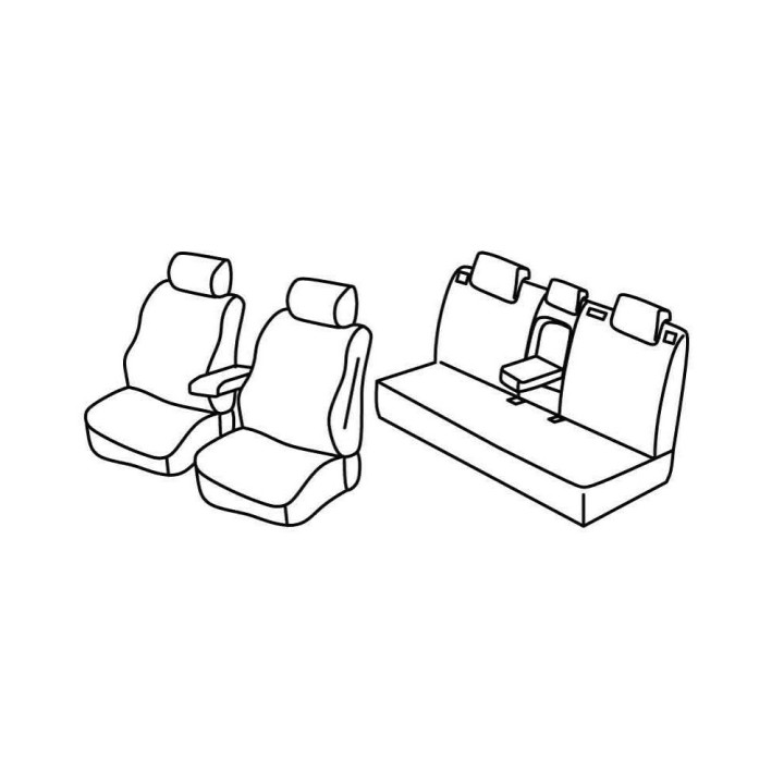 juego de fundas de tela a medida delanteras (2 asientos delanteros + reposabrazos + 2 reposacabezas) + (banqueta trasera: asiento + respaldo + reposacabezas)
