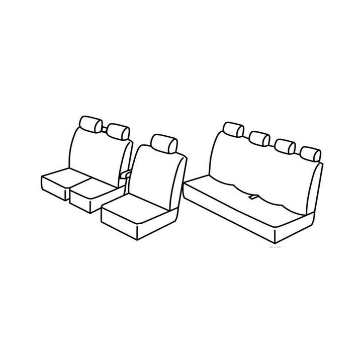 juego de fundas de tela a medida delanteras (1 asiento delantero + reposabrazos + reposacabezas) + (Banqueta delantera: Asiento + Respaldo + Reposacabezas (2 plazas)) + banqueta trasera de 4 plazas