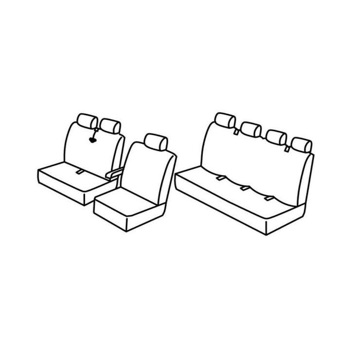 juego de fundas a medida de tela delantera (4 asientos separados + reposabrazos + reposacabezas) + (asiento trasero PASAJERO: asiento + respaldo + reposacabezas (3 plazas)):