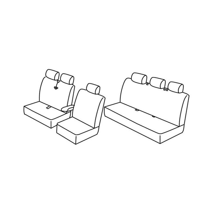 juego de fundas a medida de tela delantera (2 asientos delanteros + reposabrazos + reposacabezas) + (Asiento trasero PASAJERO: Asiento + Respaldo + Reposacabezas (3 plazas))