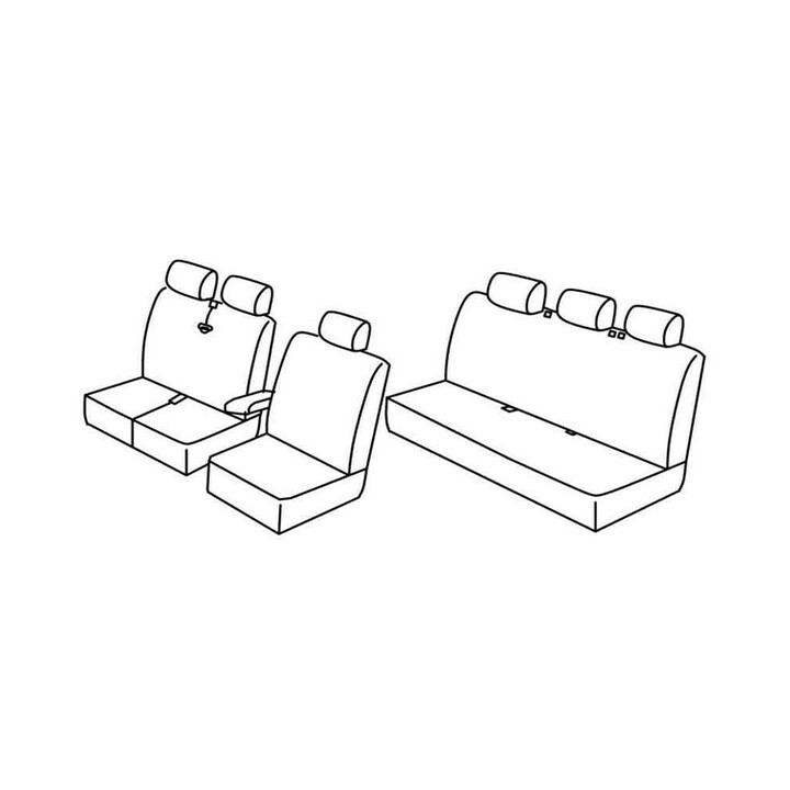 juego de fundas a medida de tela delantera (2 asientos delanteros + reposabrazos + reposacabezas) + (Asiento trasero PASAJERO: Asiento + Respaldo + Reposacabezas (3 plazas))