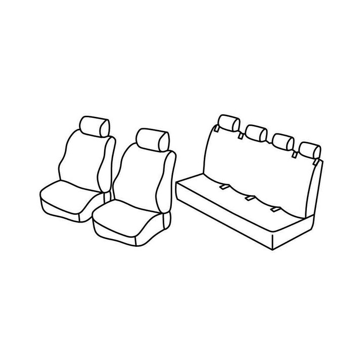 juego de fundas de tela a medida delanteras (1+1: asiento delantero + reposabrazos + reposacabezas) + asiento trasero de 4 plazas: Asiento + Respaldo + Reposacabezas):