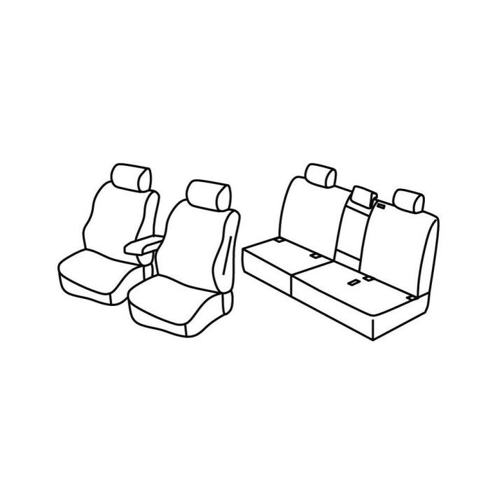 juego de fundas de tela a medida delanteras (2 asientos delanteros + reposabrazos + 2 reposacabezas) + (asiento trasero: asiento + respaldo + reposacabezas):