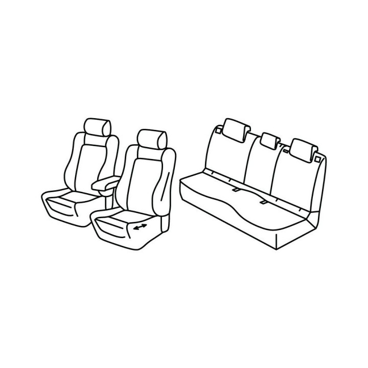 juego de fundas de tela a medida delanteras (2 asientos delanteros + reposabrazos + 2 reposacabezas) + (asiento trasero: asiento + respaldo)