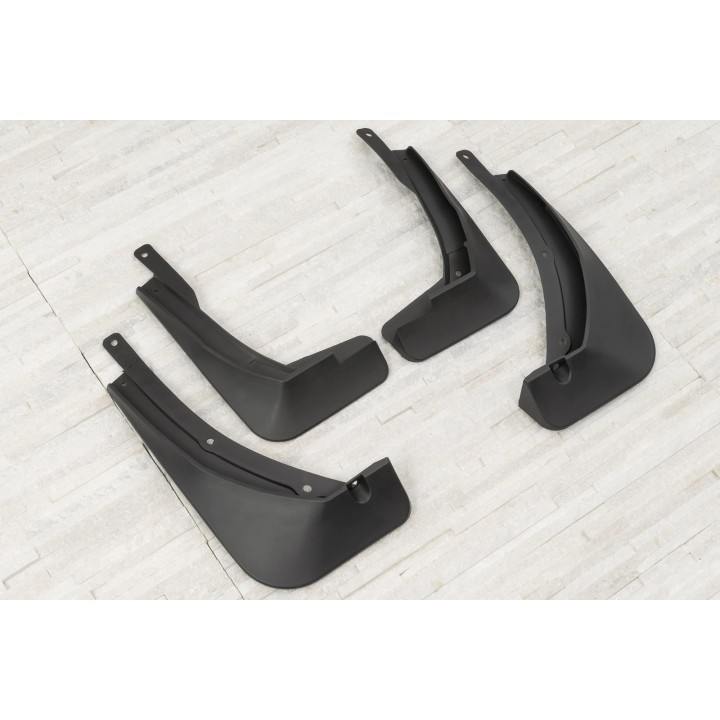 Estos guardabarros específicos están diseñados para integrarse perfectamente en la línea exterior del coche. Ellos protegen eficazmente los laterales del coche contralas salpicaduras de piedras bajo las ruedas y reducen la cantidad de agua pulverizada sobre los coches que circulan por detrás. Están fabricados en plástico de alta calidad, garantizandouna flexibilidad, una durabilidad y un aspecto estético adecuado del producto para una larga duración de uso.