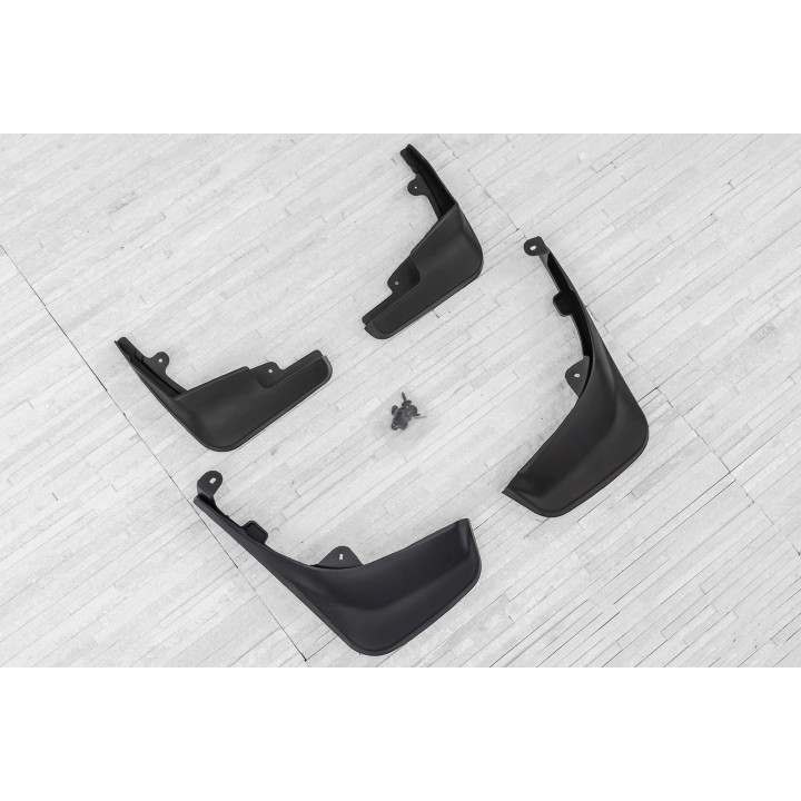 El conjunto incluye un juego de 4 guardabarros así como su sistema de fijación .