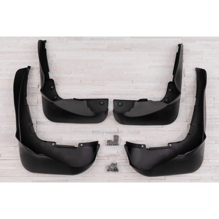 Estos guardabarros específicos están diseñados para integrarse perfectamente en la línea exterior del coche. Ellos protegen eficazmente los laterales del coche contralas salpicaduras de piedras bajo las ruedas y reducen la cantidad de agua pulverizada sobre los coches que circulan por detrás. Están fabricados en plástico de alta calidad, garantizandouna flexibilidad, durabilidad y un aspecto estético adecuados del producto para una larga duración de uso.