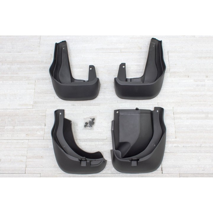 Estos guardabarros específicos están diseñados para integrarse perfectamente en la línea exterior del coche. Protegen eficazmente los laterales del coche contralas salpicaduras de piedras bajo las ruedas y reducen la cantidad de agua pulverizada sobre los coches que circulan por detrás. Están fabricados en plástico de alta calidad, garantizandouna flexibilidad, una durabilidad y un aspecto estético adecuado del producto para un uso prolongado.