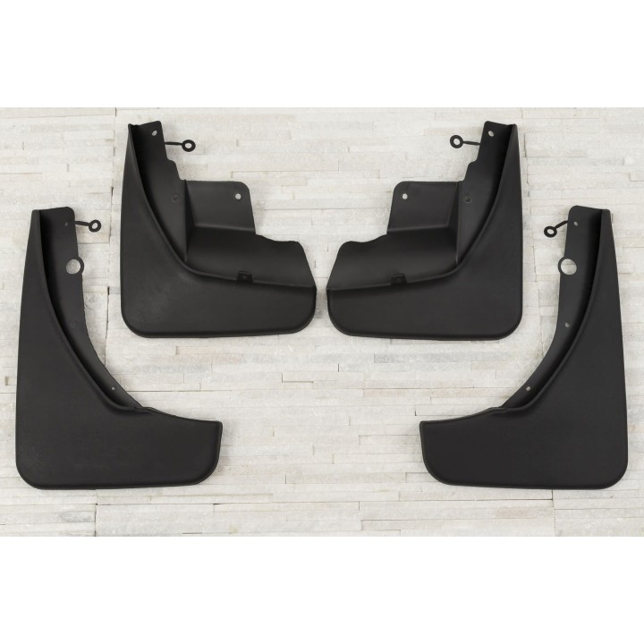 Estos guardabarros específicos están diseñados para integrarse perfectamente en la línea exterior del coche. Protegen eficazmente los laterales del coche contralas salpicaduras de piedras bajo las ruedas y reducen la cantidad de agua pulverizada sobre los coches que circulan por detrás. Están fabricados en plástico de alta calidad, garantizandouna flexibilidad, una durabilidad y un aspecto estético adecuados del producto para una larga duración de uso.