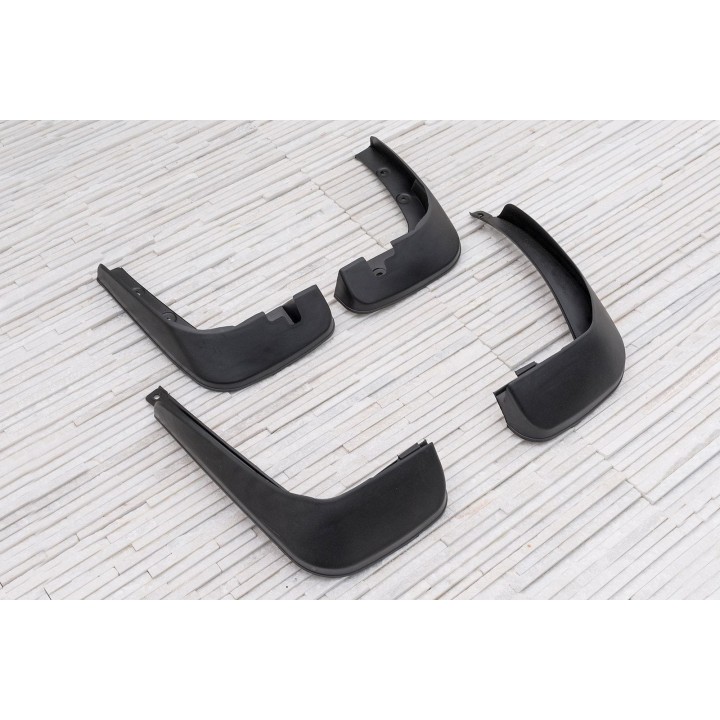 Estos guardabarros específicos están diseñados para integrarse perfectamente en la línea exterior del coche. Protegen eficazmente los laterales del coche contralas salpicaduras de piedras bajo las ruedas y reducen la cantidad de agua pulverizada sobre los coches que circulan por detrás. Están fabricados en plástico de alta calidad, garantizandouna flexibilidad, una durabilidad y un aspecto estético adecuado del producto para un uso prolongado.