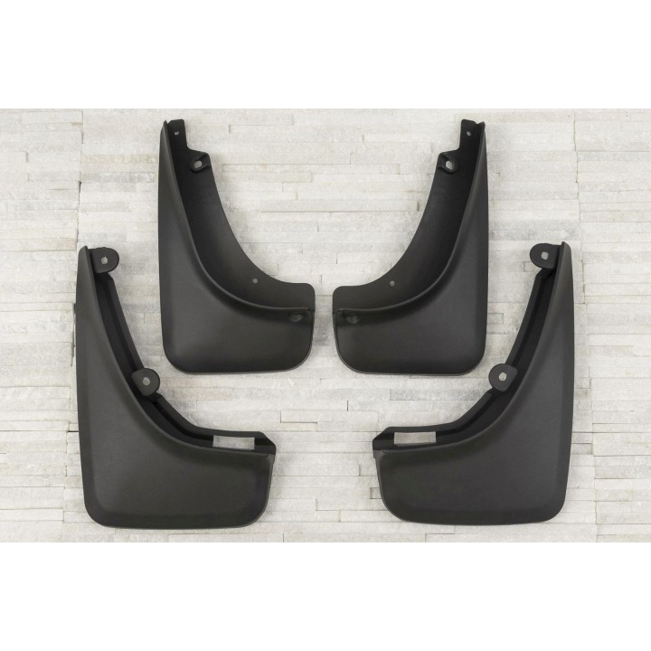 Estos guardabarros específicos están diseñados para integrarse perfectamente en la línea exterior del coche. Protegen eficazmente los laterales del coche contralas salpicaduras de piedras bajo las ruedas y reducen la cantidad de agua pulverizada sobre los coches que circulan por detrás. Están fabricados en plástico de alta calidad, garantizandouna flexibilidad, una durabilidad y un aspecto estético adecuado del producto para un uso prolongado.