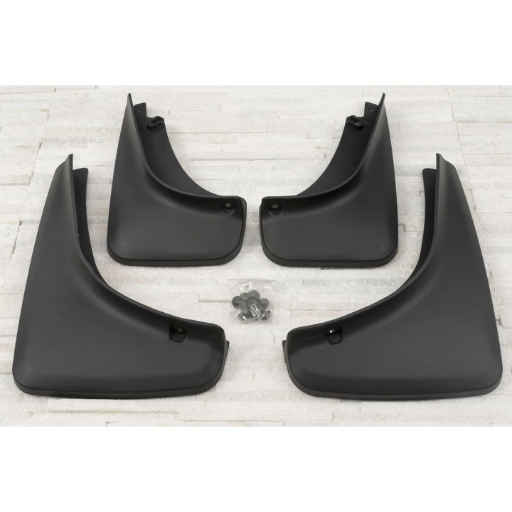 Estos guardabarros específicos están diseñados para integrarse perfectamente en la línea exterior del coche. Ellos protegen eficazmente los laterales del coche contralas salpicaduras de piedras bajo las ruedas y reducen la cantidad de agua pulverizada sobre los coches que circulan por detrás. Están fabricados en plástico de alta calidad, garantizandouna flexibilidad, durabilidad y un aspecto estético adecuados del producto para una larga duración de uso.