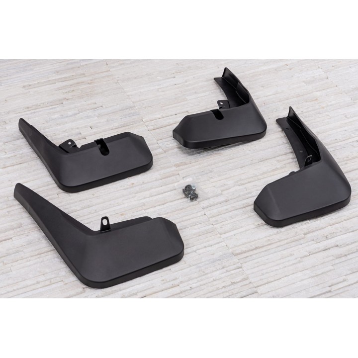 El conjunto incluye un juego de 4 guardabarros así como su sistema de fijación .