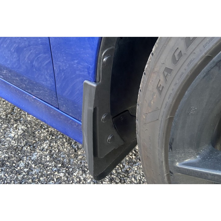 Estos guardabarros específicos están diseñados para integrarse perfectamente en la línea exterior del coche. Ellos protegen eficazmente los laterales del coche contralas salpicaduras de piedras bajo las ruedas y reducen la cantidad de agua pulverizada sobre los coches que circulan por detrás. Están fabricados en plástico de alta calidad, garantizandouna flexibilidad, una durabilidad y un aspecto estético adecuado del producto para una larga vida útil.