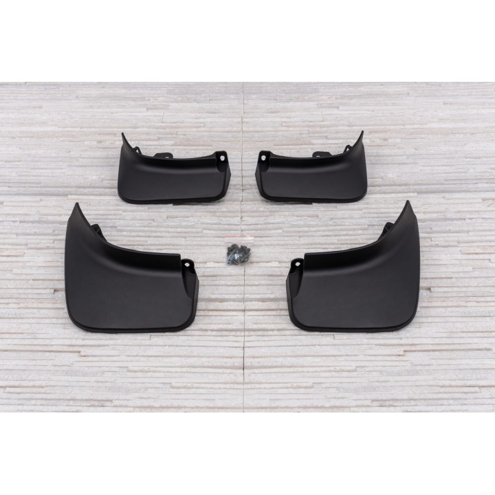 Estos guardabarros específicos están diseñados para integrarse perfectamente en la línea exterior del coche. Ellos protegen eficazmente los laterales del coche contralas salpicaduras de piedras bajo las ruedas y reducen la cantidad de agua pulverizada sobre los coches que circulan por detrás. Están fabricados en plástico de alta calidad, garantizandouna flexibilidad, durabilidad y un aspecto estético adecuado del producto para una larga duración de uso.