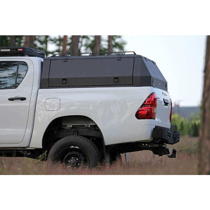 El HARD TOP para TOYOTA HILUX está fabricado en aluminio de 3 mm de espesor y es una estructura autoportante. Su borde superior y sus potentes postes de esquina constituyen una base sólida para el montaje de barras de techo o tiendas de campaña en el techo rígido, lo que a menudo es imposible en el caso de estructuras compuestas debido a su baja resistencia. Para facilitar la instalación de portaequipajes o tiendas de techo en el HARD TOP, hemos previsto rieles con orificios de fijación que permiten un ajuste de altura de los elementos atornillados.