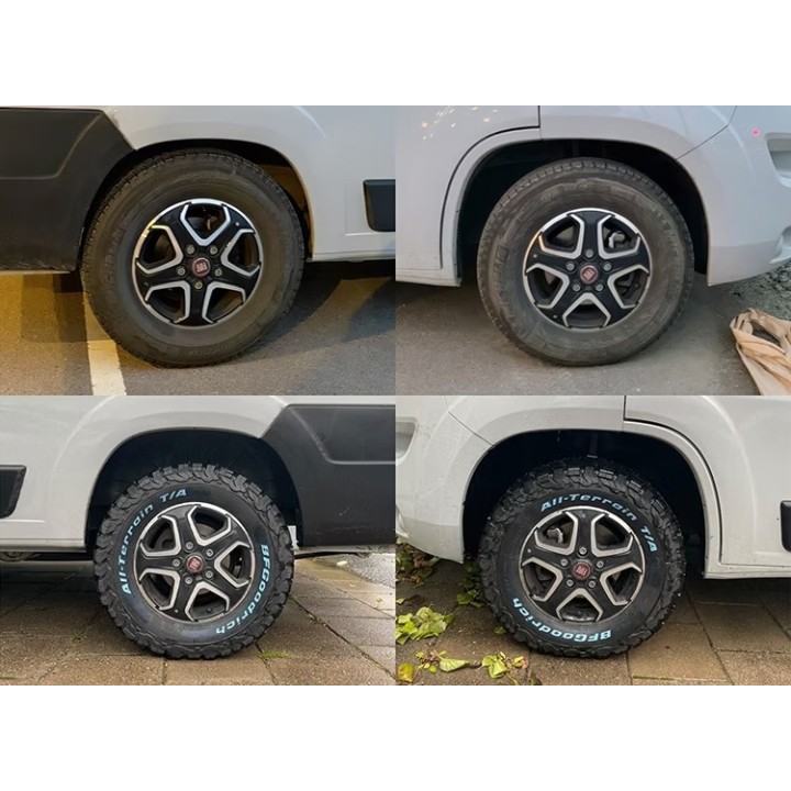Kit completo con muelles auxiliares traseros para su Fiat Ducato / Citroën Jumper / Peugeot Boxer / Opel Movano 2022+. Esta suspensión auxiliar también eleva el coche 50 mm en la parte trasera en posición descargada, lo que aumenta la distancia al suelo y le da al coche un aspecto más bonito. Los muelles son progresivos y se endurecen con una carga mayor, lo que significa que se mantiene la comodidad del coche independientemente de la carga. Todos los productos MAD son productos aprobados y probados por el TUV que no afectan a otras partes del coche. Este kit es adecuado para aquellos que conducen constantemente con una carga de 350 a 750 kg. Cuando se conduce con más de 750 kg, el coche mantiene su altura normal. Recomendamos este kit al 99/100 de los usuarios.