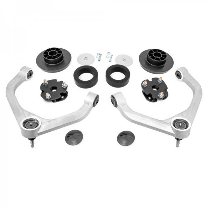 El kit de elevación de 7.5 cms de Rough Country ofrece una fácil instalación y un aspecto agresivo y atractivo a un precio increíble. Lleva tu camioneta a nuevas alturas con esta excelente opción para las camionetas RAM 1500. Este kit incluye un conjunto de brazos de control superiores tubulares de alta calidad, diseñados para facilitar los ajustes de alineación y bujes de goma Clevite para una mayor durabilidad. Estos brazos están diseñados para promover una geometría similar a la de fábrica, manteniendo la rótula en ángulos óptimos después de la elevación. Este diseño permite una amplitud de movimiento mejorada y mayor desde la rótula, con menos tensión y desgaste.