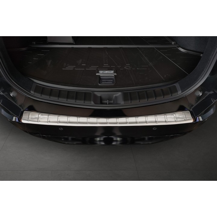 Esta protección de umbral de maletero con bordes protege eficazmente contra abolladuras y arañazos durante la carga y descarga. Gracias a su forma, como el patrón acanalado en la parte superior, está hecha de tal manera que se adapta perfectamente al diseño del LEXUS RZ. Y si algún día desea reemplazar el protector después de un uso intensivo, también es posible. Será mucho más barato que volver a pintar su parachoques.