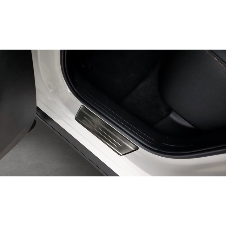 Los umbrales de puerta INOX protegen los bordes de su MAZDA CX-60 eficazmente contra abolladuras y arañazos que pueden ocurrir durante la entrada y salida. Además, le dan a su MAZDA CX-60 una apariencia de alta gama. Este accesorio de alta calidad está fabricado en Europa.