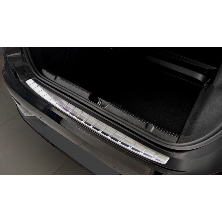 Esta protección de umbral de maletero con bordes protege eficazmente contra abolladuras y arañazos durante la carga y descarga. Gracias a su forma, como el patrón acanalado en la parte superior, está hecho de tal manera que se adapta perfectamente al diseño del MERCEDES EQE. Y si algún día desea reemplazar el protector después de un uso intensivo, también es posible. Será mucho más barato que volver a pintar su parachoques.