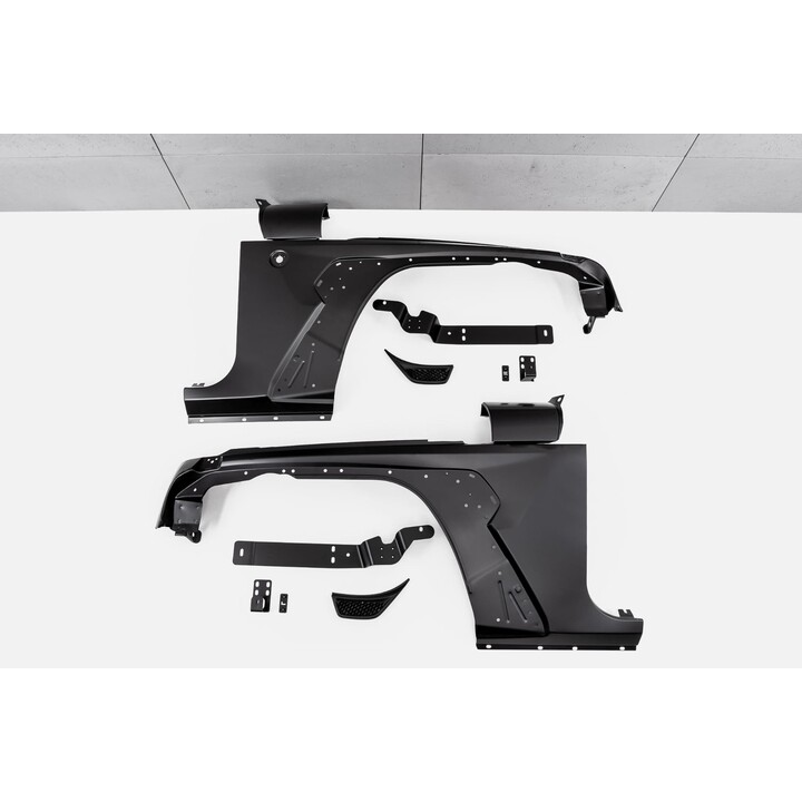 Un conjunto de aletas delanteras - diseñadas al estilo característico del JEEP WRANGLER JL con tomas de aire laterales