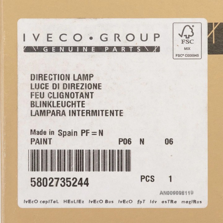 intermitente izquierdo original Iveco Daily 2014+ Iveco Daily 2019+ REF 5802735244