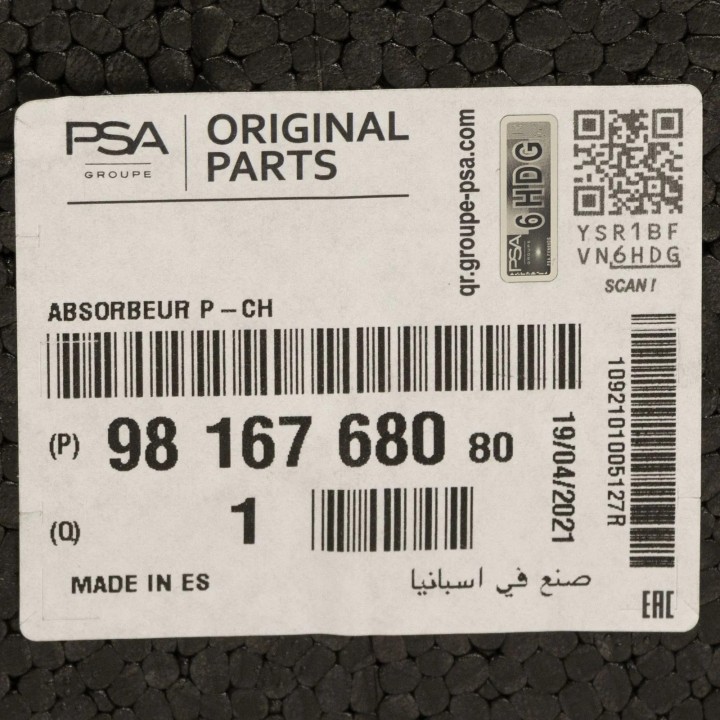 Absorbedor de parachoques delantero original Citroën DS REF 9816768080: