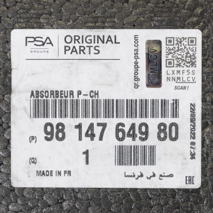 Amortiguador de parachoques delantero original Citroën Peugeot REF 9814764980: