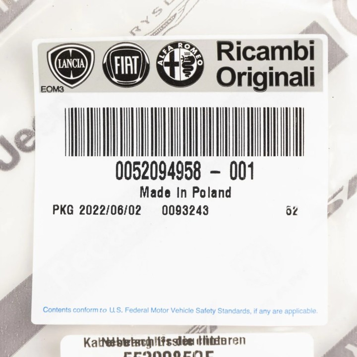 Mazo de cables antiniebla delantero izquierdo original Fiat 500 2015+ REF 52094958:
