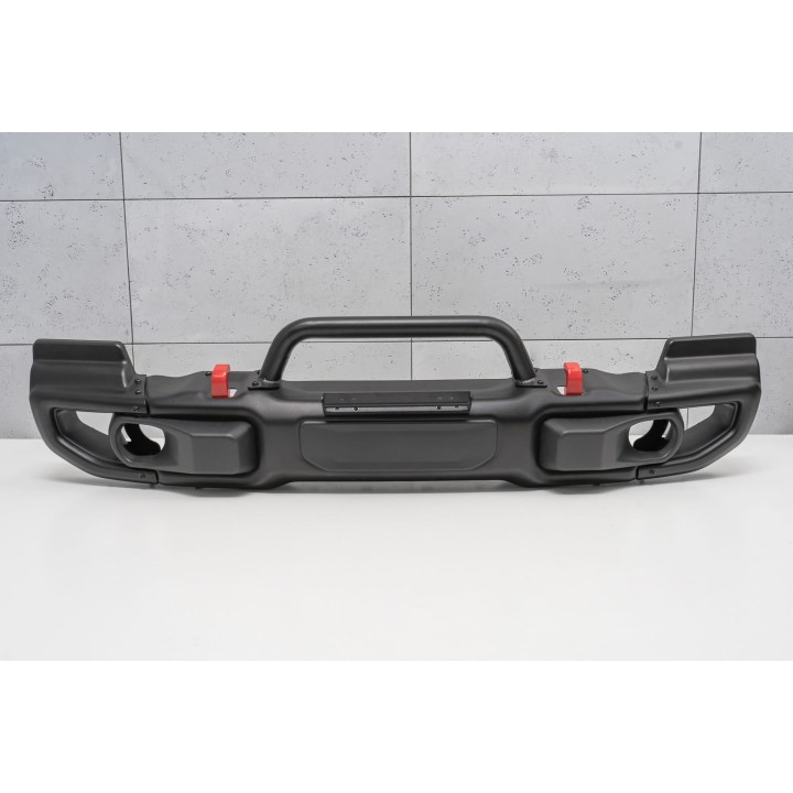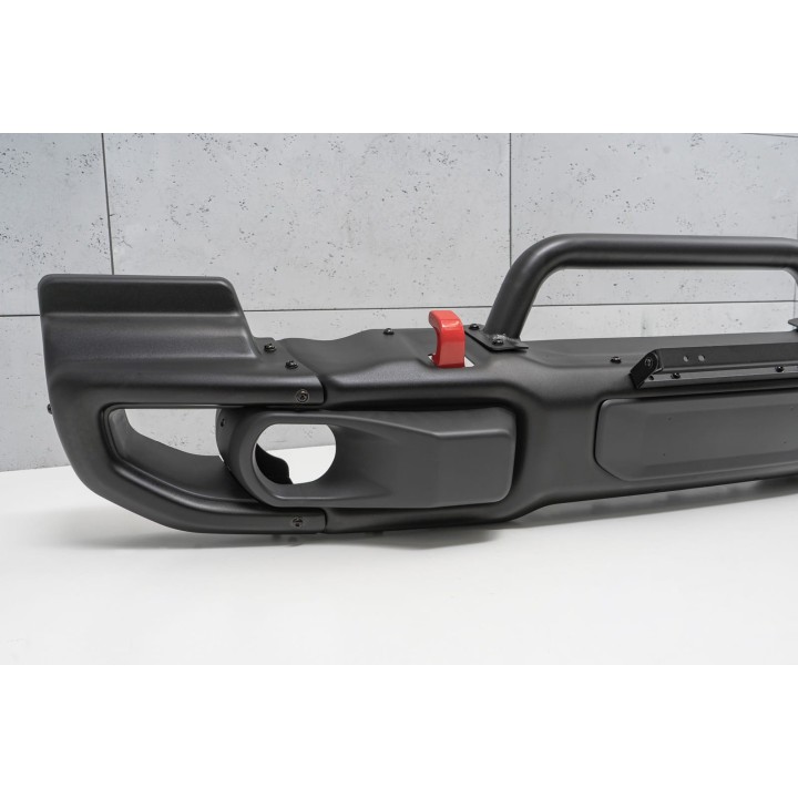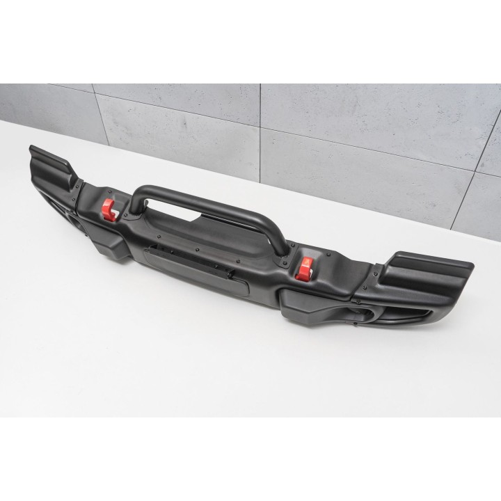 Es un parachoques modular; es posible desmontar los elementos laterales de acero, lo que permite aumentar la distancia al suelo y mejorar el ángulo de ataque. El parachoques tiene un espacio para el montaje y una placa para un cabrestante eléctrico, ganchos de remolque rojos para grilletes, marcos metálicos para los faros antiniebla y fijaciones adicionales para los faros de trabajo.