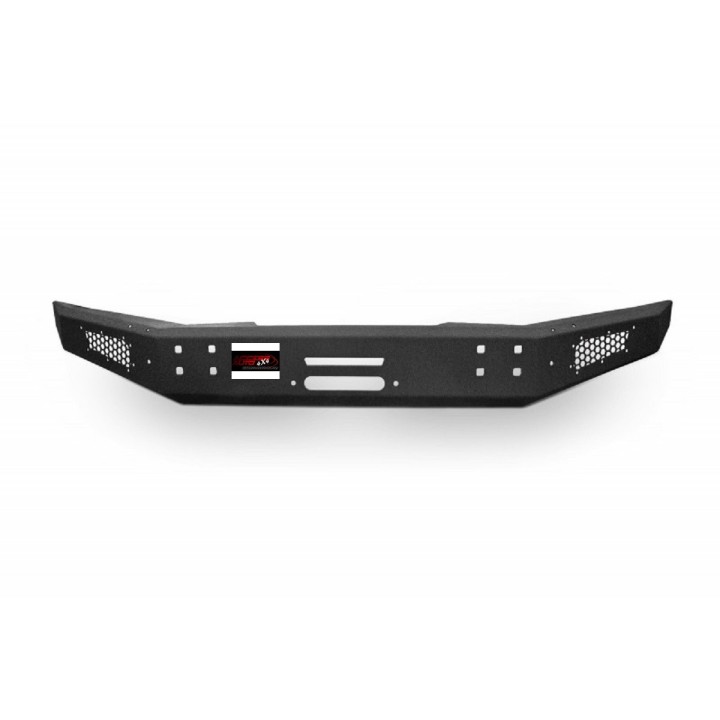 - El parachoques está equipado con dos soportes integrados para luces diurnas o antiniebla, fijaciones reforzadas para soportes de grilletes y una placa de soporte de cabrestante integrada (posibilidad de instalar un cabrestante de 4 a 5000 kgs).